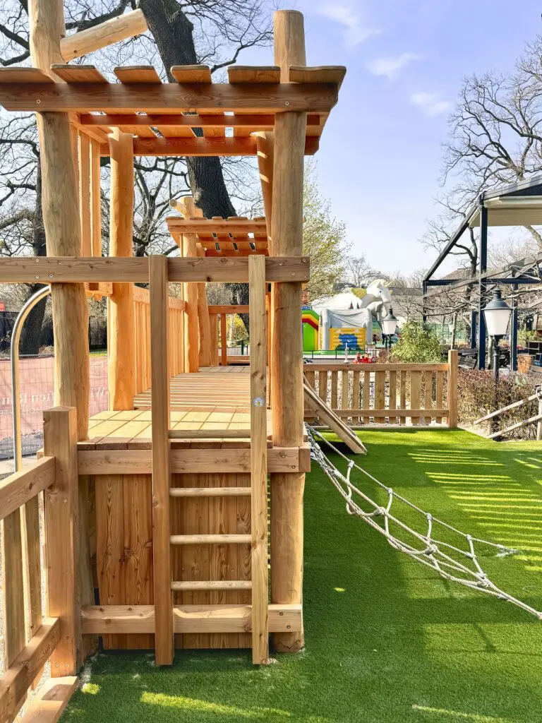 Um den Besuch in der Luftburg für die ganze Familie zum Erlebnis zu machen, wurde ein zusätzlicher Kinder-Spielbereich im Gastgarten errichtet. Hier findet sich alles, was das Kinderherz begehrt: ein Klettergerüst, eine Rutsche und sogar eine Kieselsteinküche für kleine Nachwuchstalente. Neu ist auch der „Prater Train“, ein kleines Rundfahrgeschäft für Kinder.